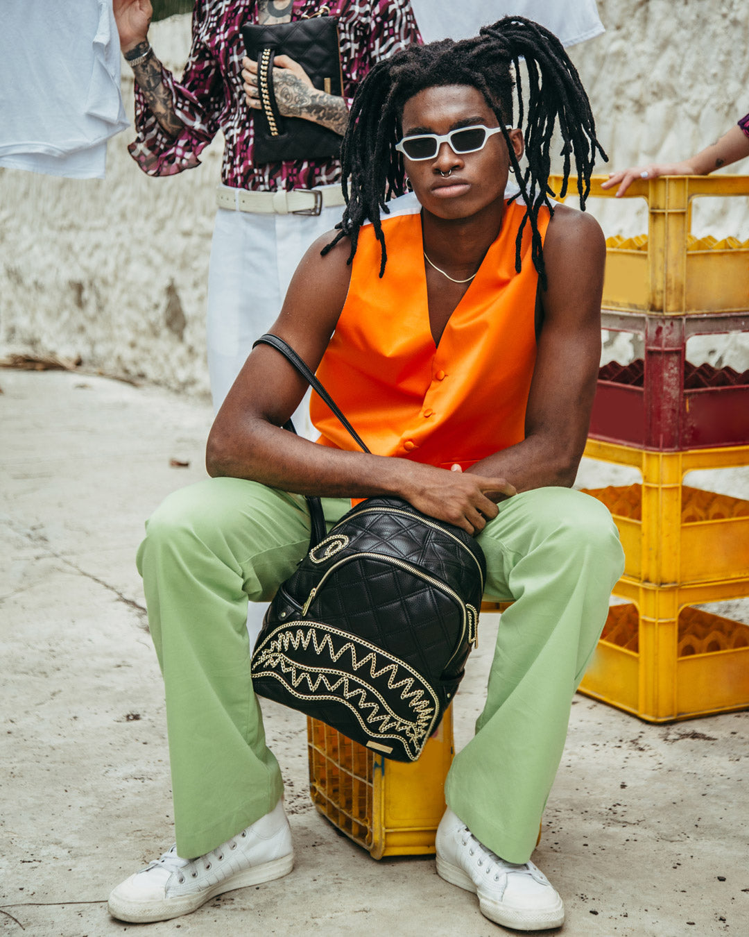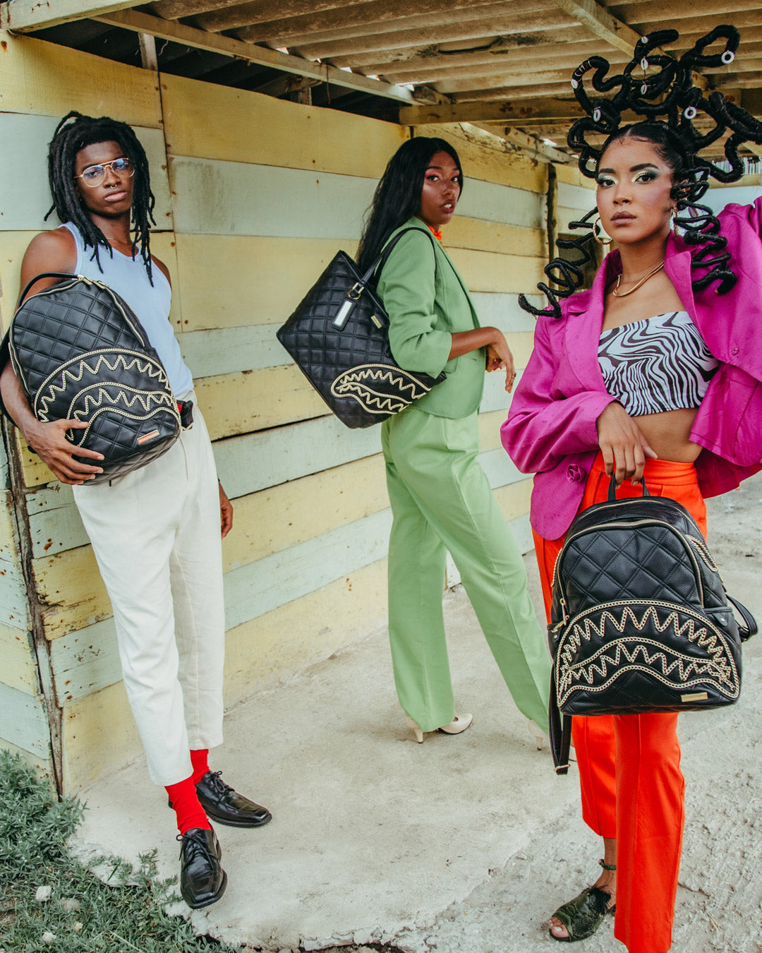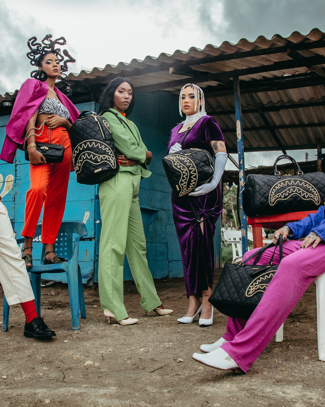 Dimensions: 10' x 5' x 11.5' • Two large main zippered compartments • Side pockets • Zippered Stash pocket • Adjustable straps for custom sizing • Gold zippers with metal hardware