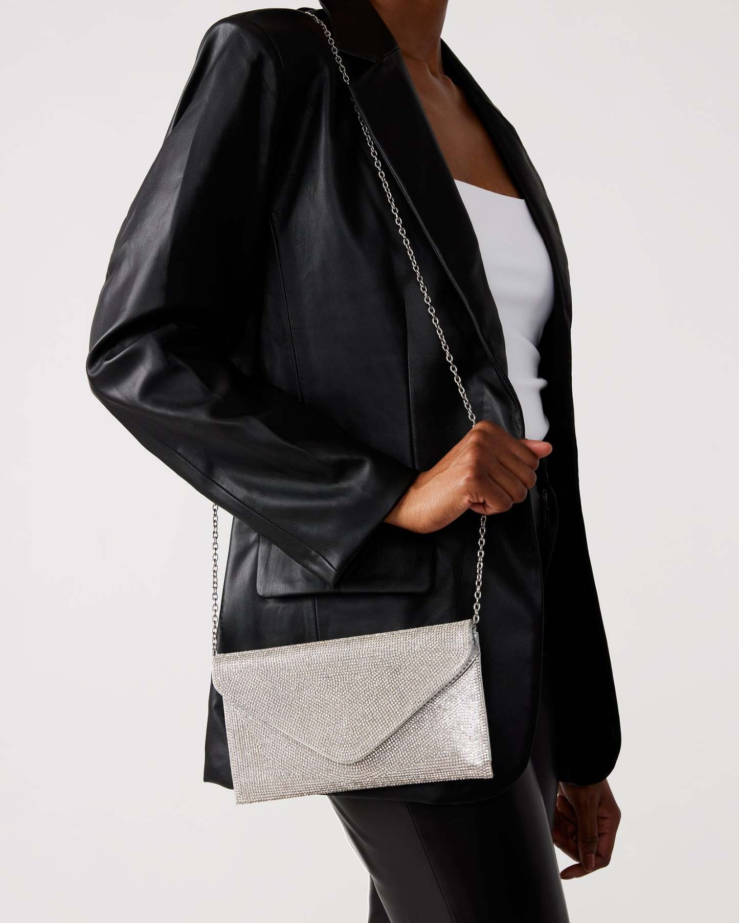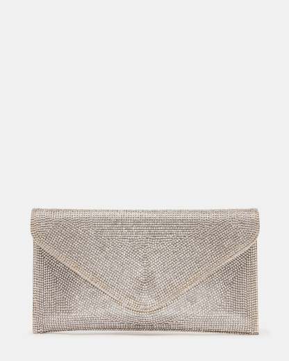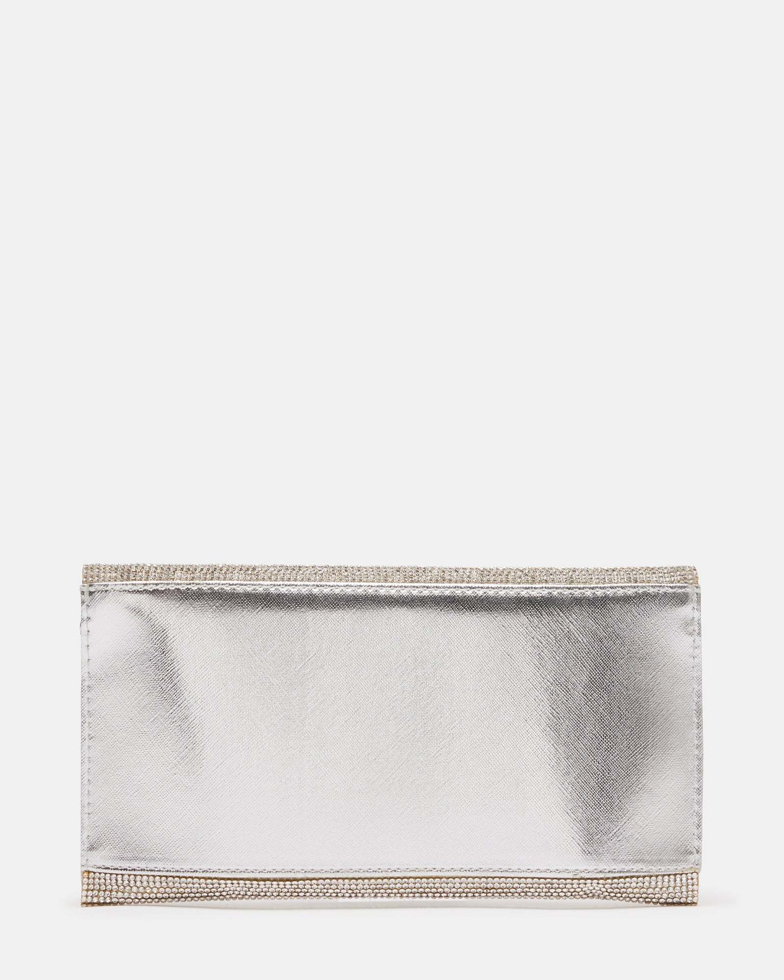 Tiny rhinestones blanket the SWAGGER Bags face, transforming this otherwise simple envelope bag into a sparkling statement style. Rock this flashy new favorite as a crossbody, or tuck its delicate chain strap inside and carry as a clutch.