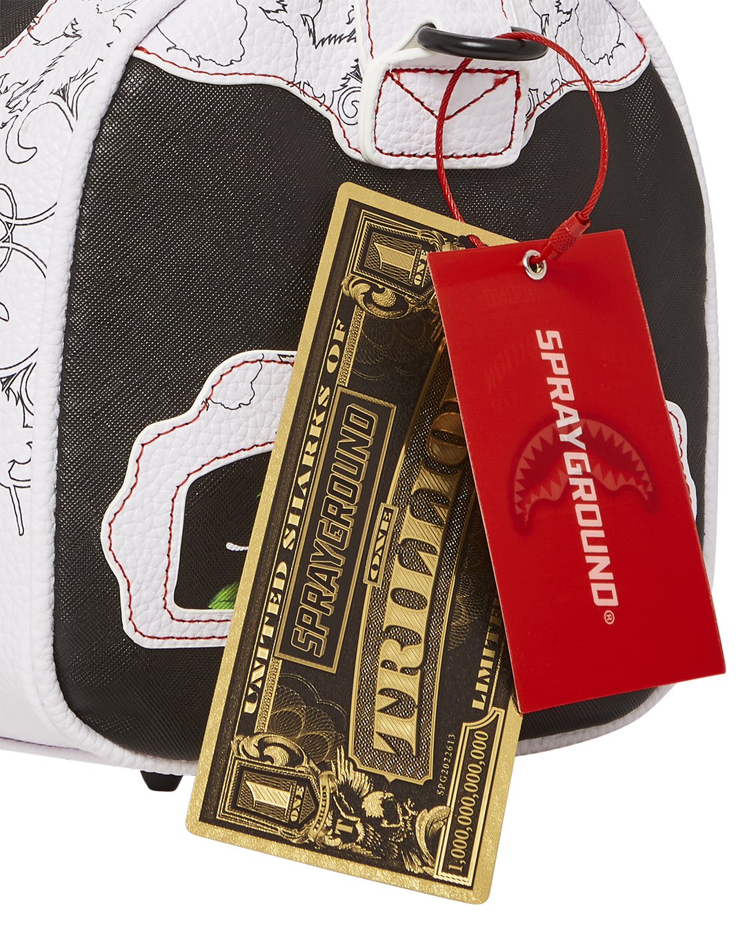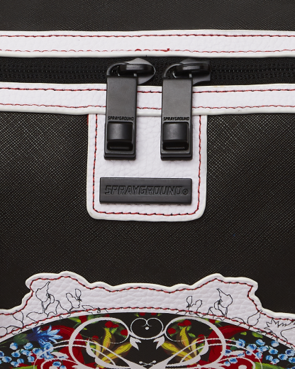 Dimensions: 8' x 7.5' x 13' • Metal zipper pocket• Back Zippers •Zippered sneaker pocket • gold zippers • Adjustable Straps for custom sizing •Metal Zippers with Metal Hardware • bag of Sprayground money